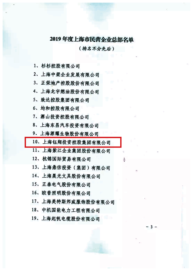 2019年12月30日,上海市商務(wù)委發(fā)布2019年度上海市民營企業(yè)總部名單,上海鈺翔投資控股集團(tuán)有限公司等149家單位被認(rèn)定為2019年度上海市民營企業(yè)總部,這一認(rèn)定是鈺翔控股集團(tuán)在新的一年實(shí)現(xiàn)更好更快發(fā)展的開端。