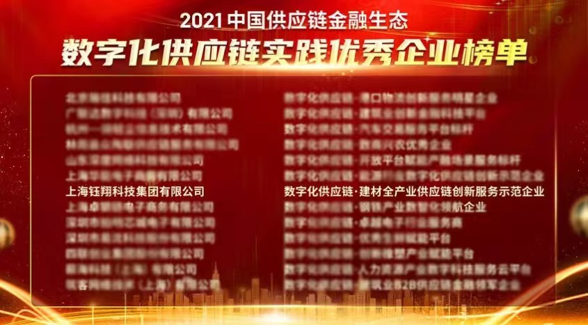 在此背景下,萬聯(lián)供應(yīng)鏈金融研究院聯(lián)合復(fù)旦大學(xué)國(guó)際供應(yīng)鏈金融研究中心發(fā)起了以“數(shù)字化供應(yīng)鏈金融”為主題的“第五屆中國(guó)供應(yīng)鏈金融生態(tài)優(yōu)秀企業(yè)評(píng)選”,希望遴選行業(yè)標(biāo)桿,推動(dòng)中國(guó)供應(yīng)鏈金融健康發(fā)展。歷時(shí)3個(gè)月,經(jīng)過三輪篩選,從戰(zhàn)略定位、供應(yīng)鏈協(xié)同度、產(chǎn)品/用戶服務(wù)的數(shù)字化程度、人員與資金的投入、科技與業(yè)務(wù)的匹配度、轉(zhuǎn)型升級(jí)協(xié)同機(jī)制健全度、敏捷度、發(fā)展成熟度等8大維度進(jìn)行考量,選出39家優(yōu)秀企業(yè),上海鈺翔科技集團(tuán)有限公司憑借產(chǎn)業(yè)模式創(chuàng)新、數(shù)字科技創(chuàng)新,打造了數(shù)字化業(yè)務(wù)前端平臺(tái)系統(tǒng)——“智慧鈺翔供應(yīng)鏈管理平臺(tái)”,全流程應(yīng)用AI人工智能、電子簽章、GPS/北斗雙模定位、區(qū)塊鏈等前沿技術(shù),創(chuàng)造性地解決建材行業(yè)存在的問題,將數(shù)據(jù)觸角延伸至每筆訂單,將建材供應(yīng)鏈上中下游和金融機(jī)構(gòu)無縫鏈接起來,打造交易真實(shí)、信息透明、物流閉環(huán)、資金閉環(huán)、數(shù)據(jù)交叉驗(yàn)證、不可篡改、誠(chéng)信度最高的供應(yīng)鏈管理平臺(tái),榮獲“數(shù)字化供應(yīng)鏈·建材全產(chǎn)業(yè)供應(yīng)鏈創(chuàng)新服務(wù)示范企業(yè)”。