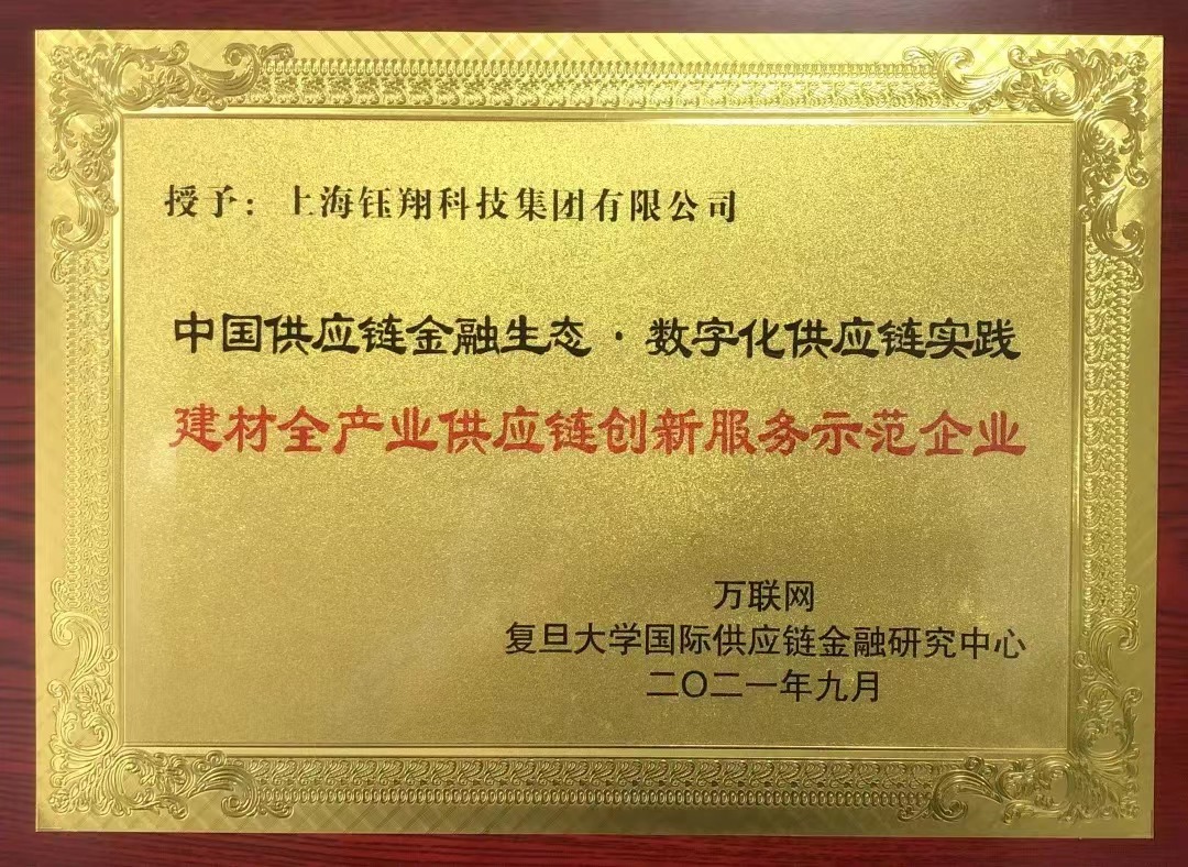 鈺翔集團(tuán)榮獲“數(shù)字化供應(yīng)鏈·建材全產(chǎn)業(yè)供應(yīng)鏈創(chuàng)新服務(wù)示范企業(yè)”稱號(hào)