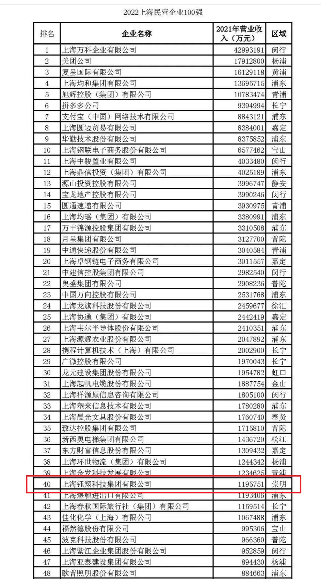 8月30日,由上海市企業聯合會、上海市企業家協會、上海市經濟團體聯合會和解放日報社聯合主辦的2022上海百強企業發布會在上海隆重舉行,會上發布了2022上海企業百強、2022上海民營企業百強等多項企業榜單。