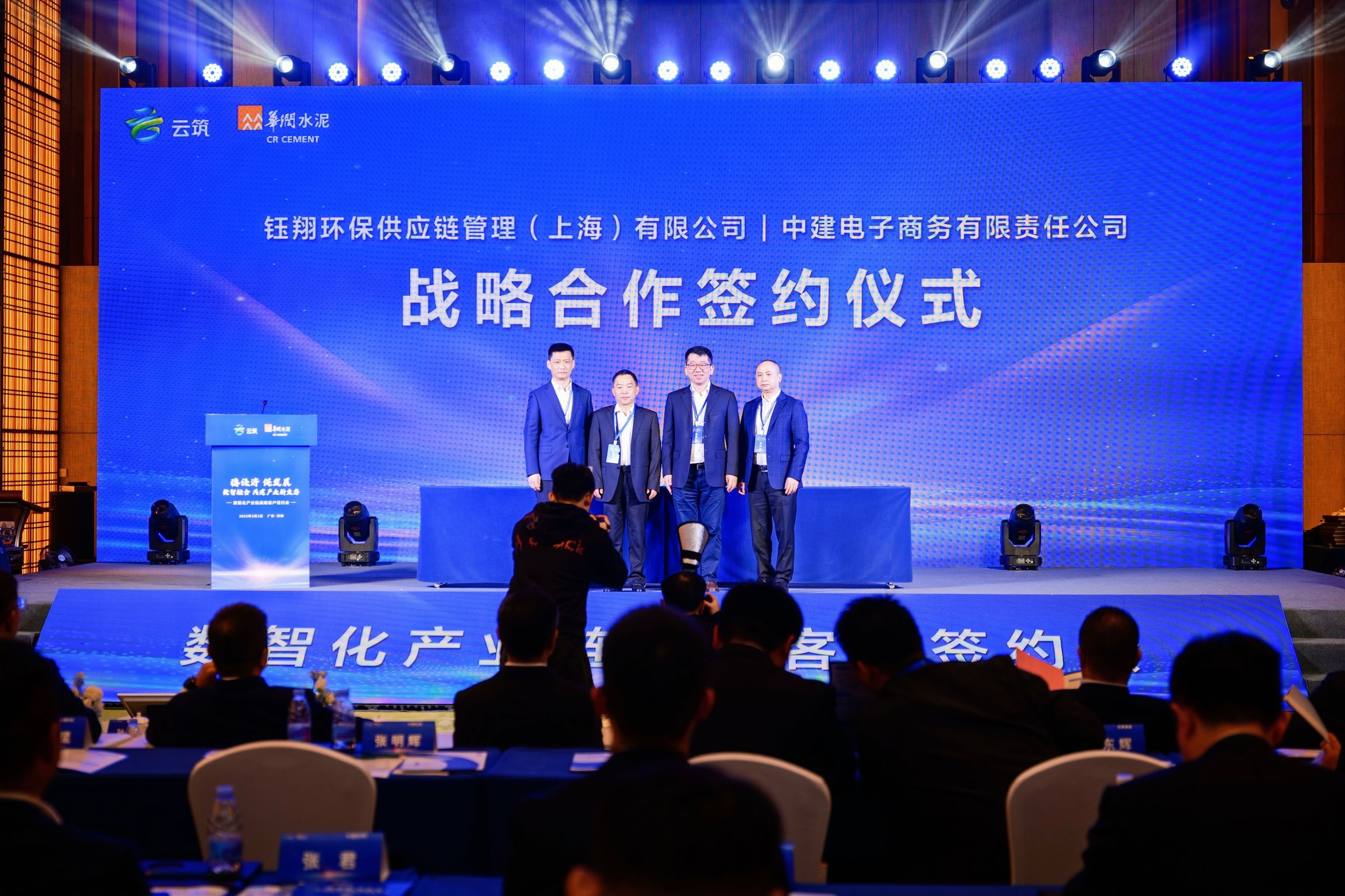 3月2日,鈺翔科技集團旗下全資子公司鈺翔環(huán)保供應鏈管理有限公司與云筑(中建電商)在深圳簽署戰(zhàn)略合作協(xié)議。本次簽約會上,云筑與鈺翔環(huán)保供應鏈管理(上海)有限公司、華潤水泥投資有限公司、普洛斯產(chǎn)融科技有限公司分別簽署戰(zhàn)略合作協(xié)議。