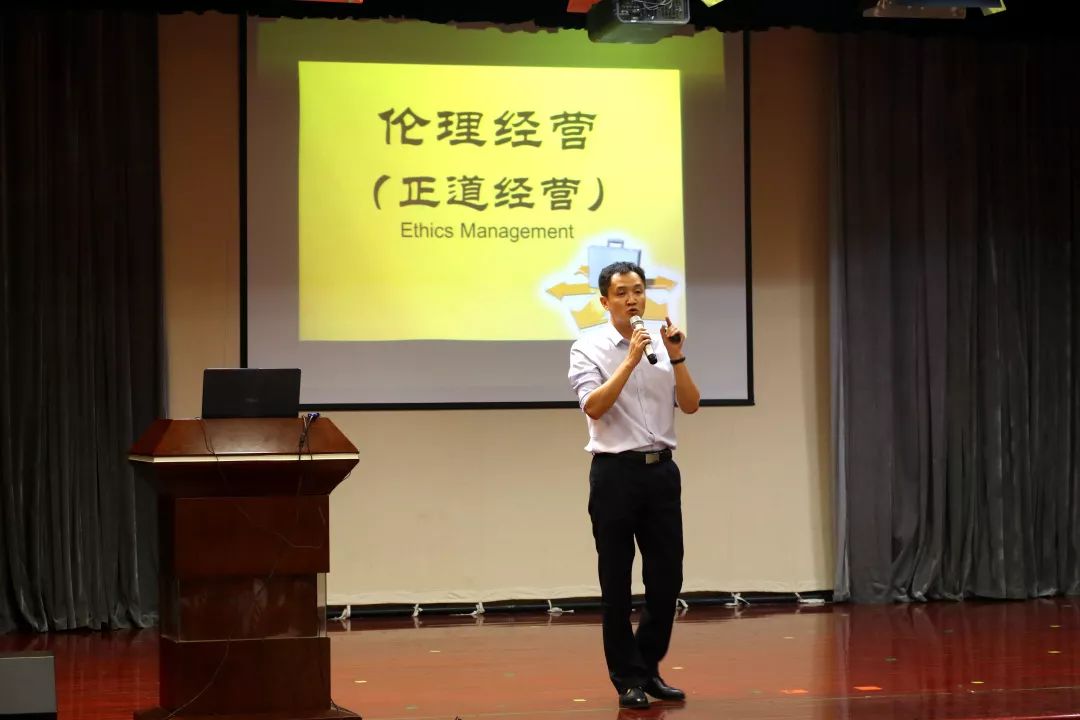 李成林總監(jiān)通過諸多有代表意義的案例,介紹了倫理經(jīng)營的定義、守法與倫理、倫理的自我診斷以及我們?cè)诠ぷ髦械膫惱斫?jīng)營等內(nèi)容。秦祖煌書記介紹了中國傳統(tǒng)文化儒釋道三家思想學(xué)說中關(guān)于廉潔修身的描述,要求全員要繼承和發(fā)揚(yáng)中國傳統(tǒng)文化,在工作和生活中注重廉潔修身。